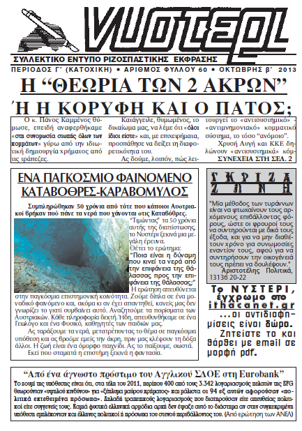 Κυκλοφορεί ανάμεσά μας το "Νυστέρι" με ένα ενδιαφέρον κύριο άρθρο και πολύ υλικό για σκέψη...